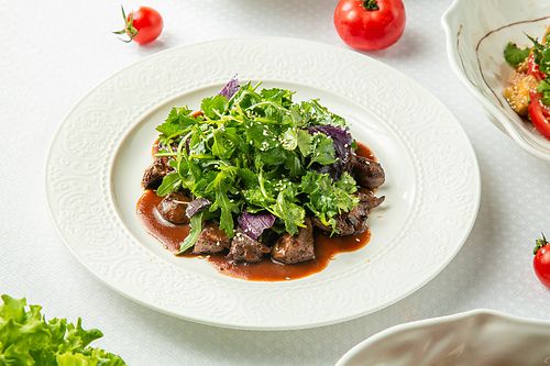 Теплый салат с куриной печенью