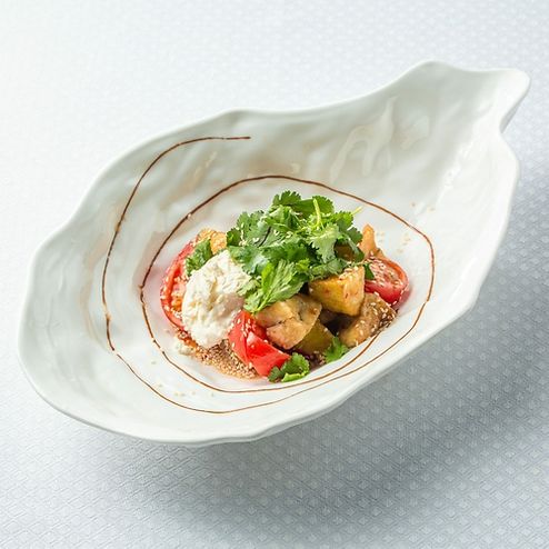 Теплый салат из хрустящих баклажан с помидорами