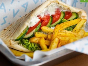В лаваше, в булке, в тандыре, картофель фри, картофель по-деревенски, 2 сырных соуса, 2шт кола 0,3л