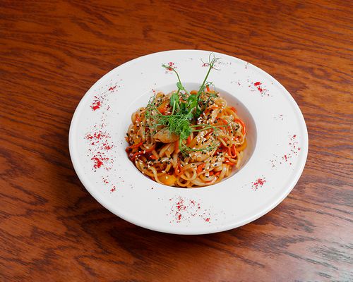 Удон с курицей в сливочном соусе
