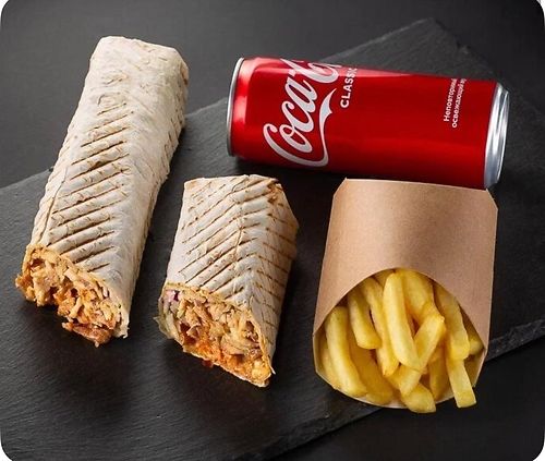 Двойное Комбо 3 вида шаурмы с картофелем и напитками