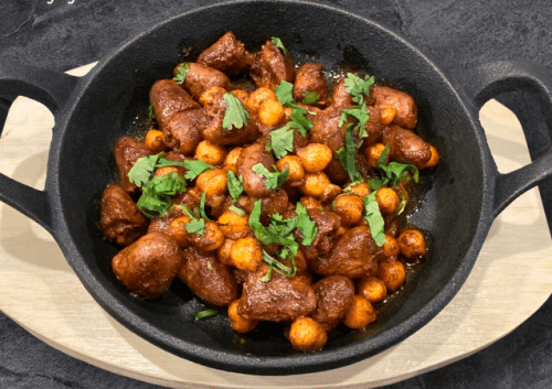 Куриные сердечки с нухутом