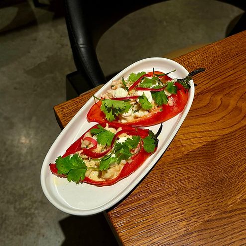 Перец рамиро с креветочным фаршем и творожным сыром