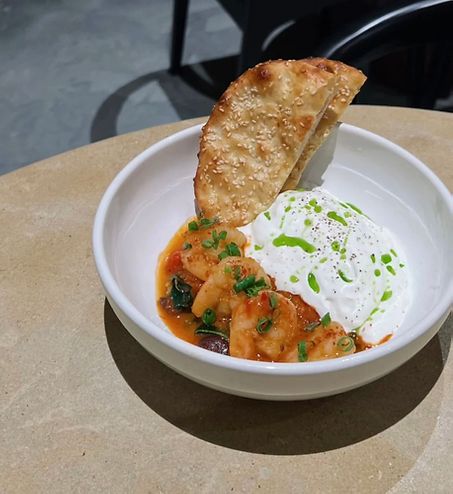 Креветки саганаки с лепешкой из дровяной печи