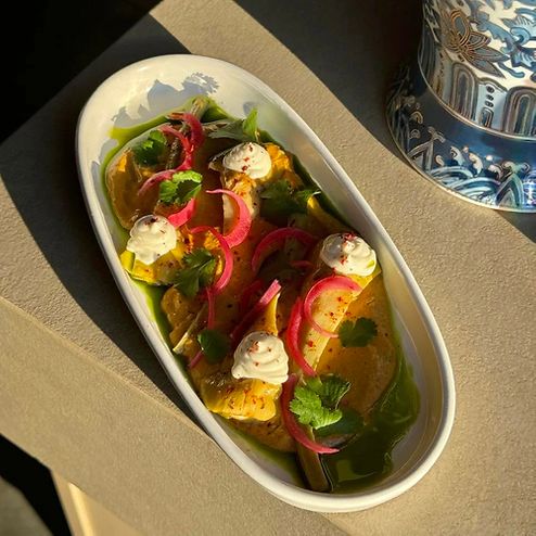 Целая дорадо из печи с овощным консоме