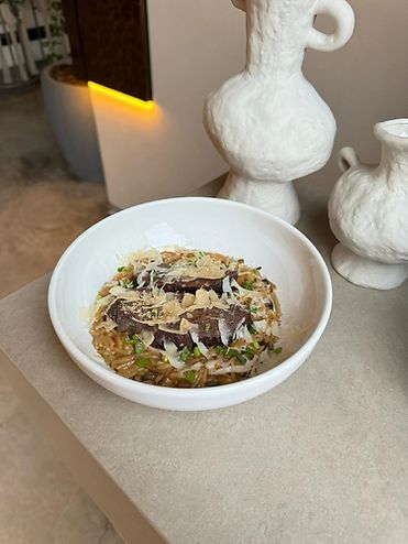 Орзо с телячьим щечками и пармезаном