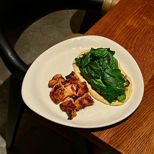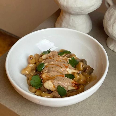 Куриное бедро с брокколи и хумус