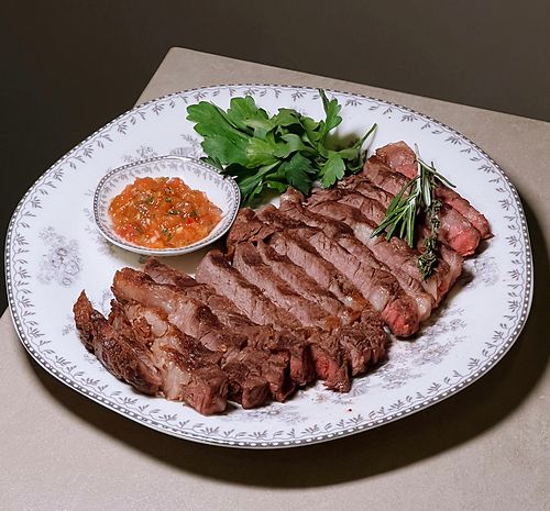 Томагавк с бейби картофелем и томатной сальсой
