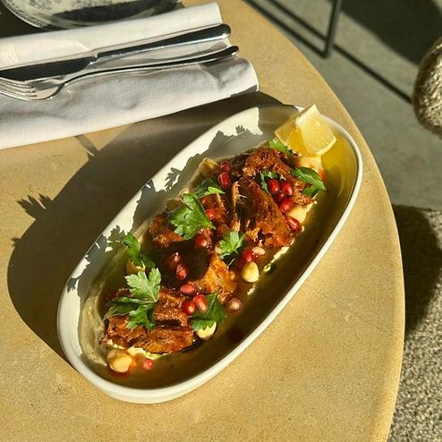 Томленый ягненок с хумусом и гранатом