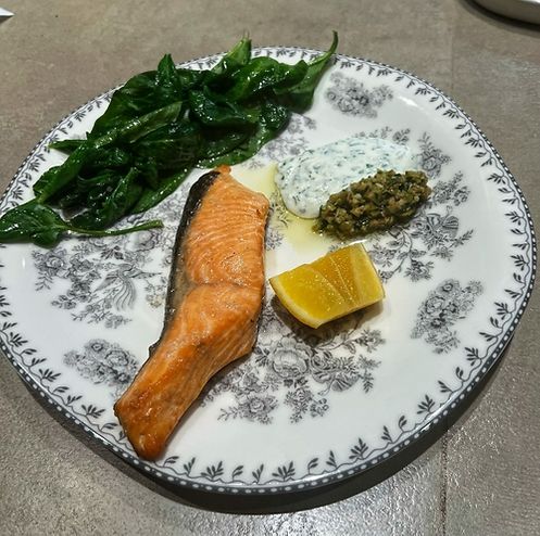 Лосось со шпинатом и йогуртовым соусом