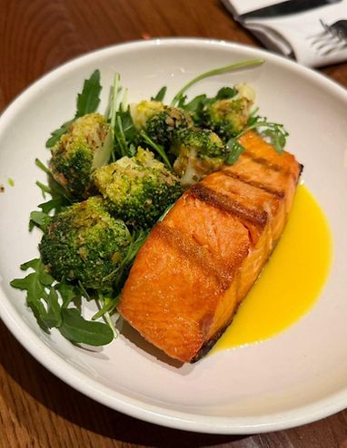 Лосось на гриле с брокколи и цитрусовым берблан