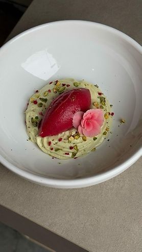Фисташковый крамбл с фисташковым муссом и малиной