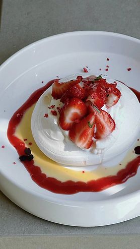 Павлова с кремом маскарпоне и клубничным сорбетом