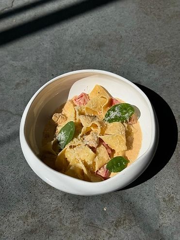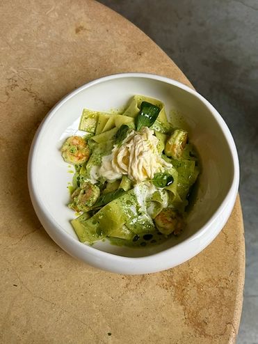 Паста Папарделле с креветками и страчателлой