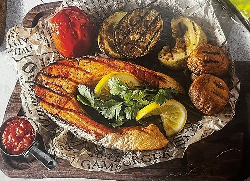 Семга с овощами