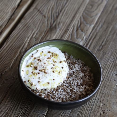 Гречневая каша с муссом из пармезана