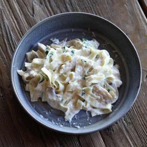 Паста тальятелли с курицей и грибами
