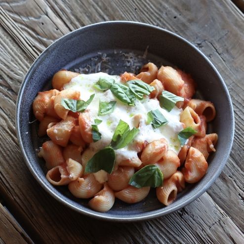 Паста в томатном соусе со страчателлой