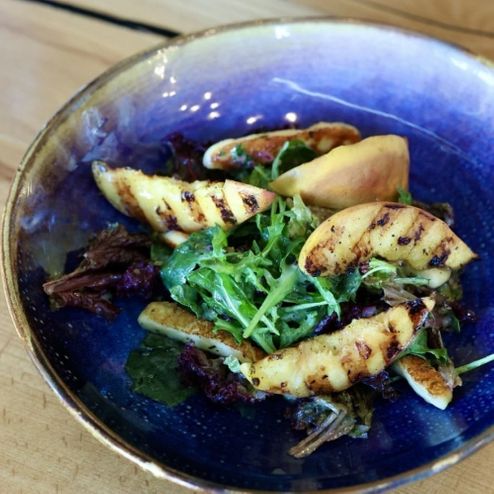 Салат с курицей, персиком и сыром халуми