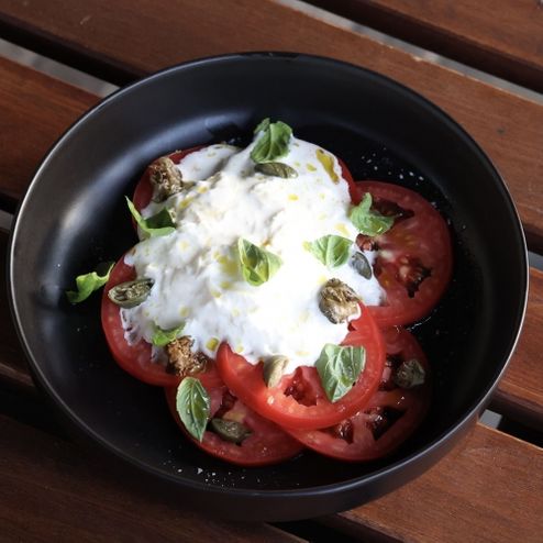 Томаты со страчателлой и каперсами