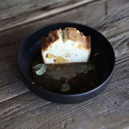 Домашний кекс с абрикосом и карамельным соусом