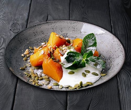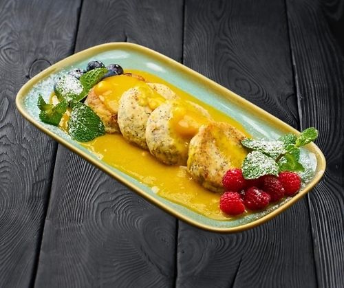 Сырники с маком в манговом пюре