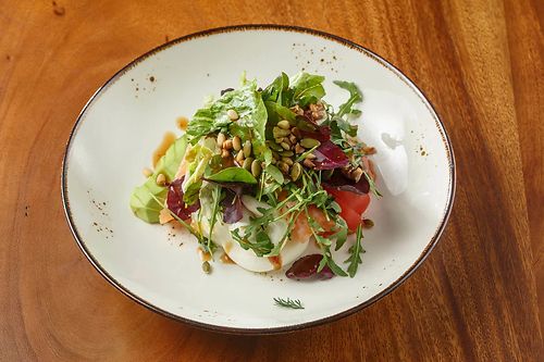Брускетта с яйцом пашот и лососем
