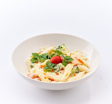 Пенне с семгой и брокколи