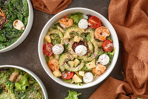 Боул с киноа и креветками