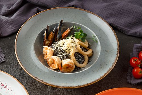 Фарфалле с лососем и креветками