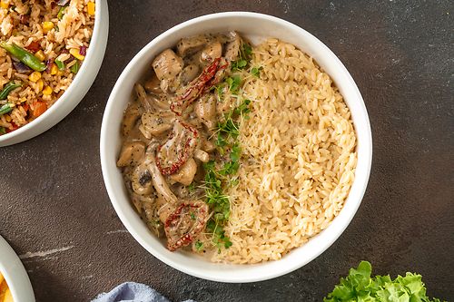 Боул с курицей и пастой орзо